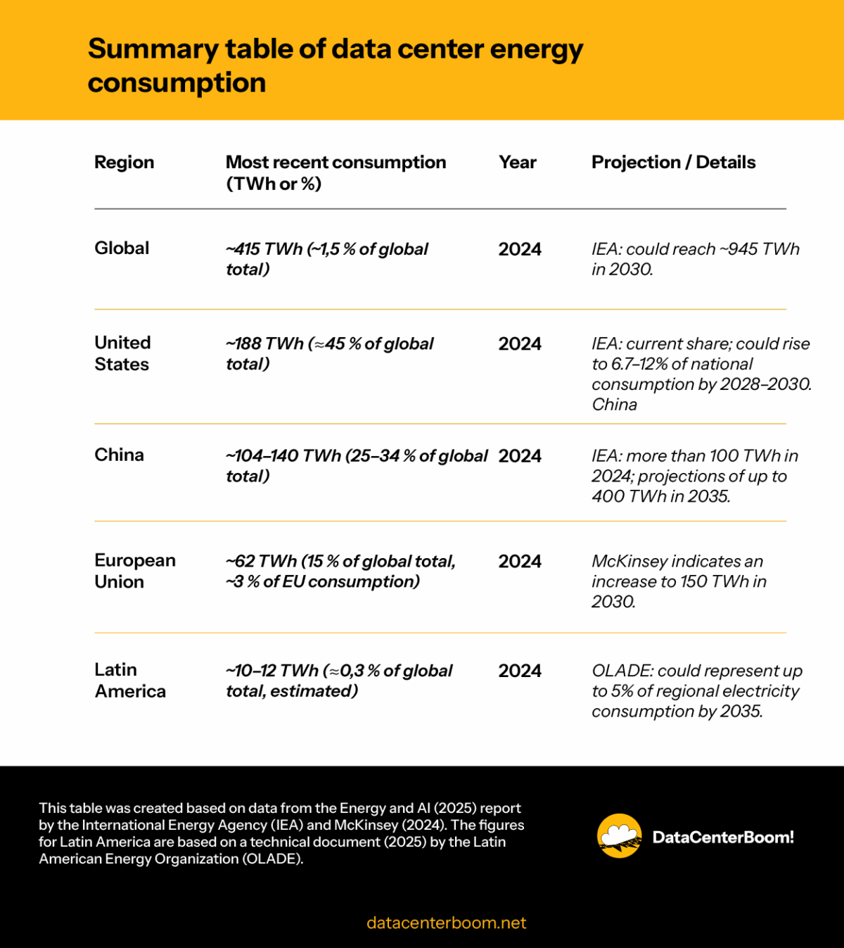 - Data centers accounted for around 1.5% of global electricity consumption in 2024, or 415 terawatt-hours (TWh).