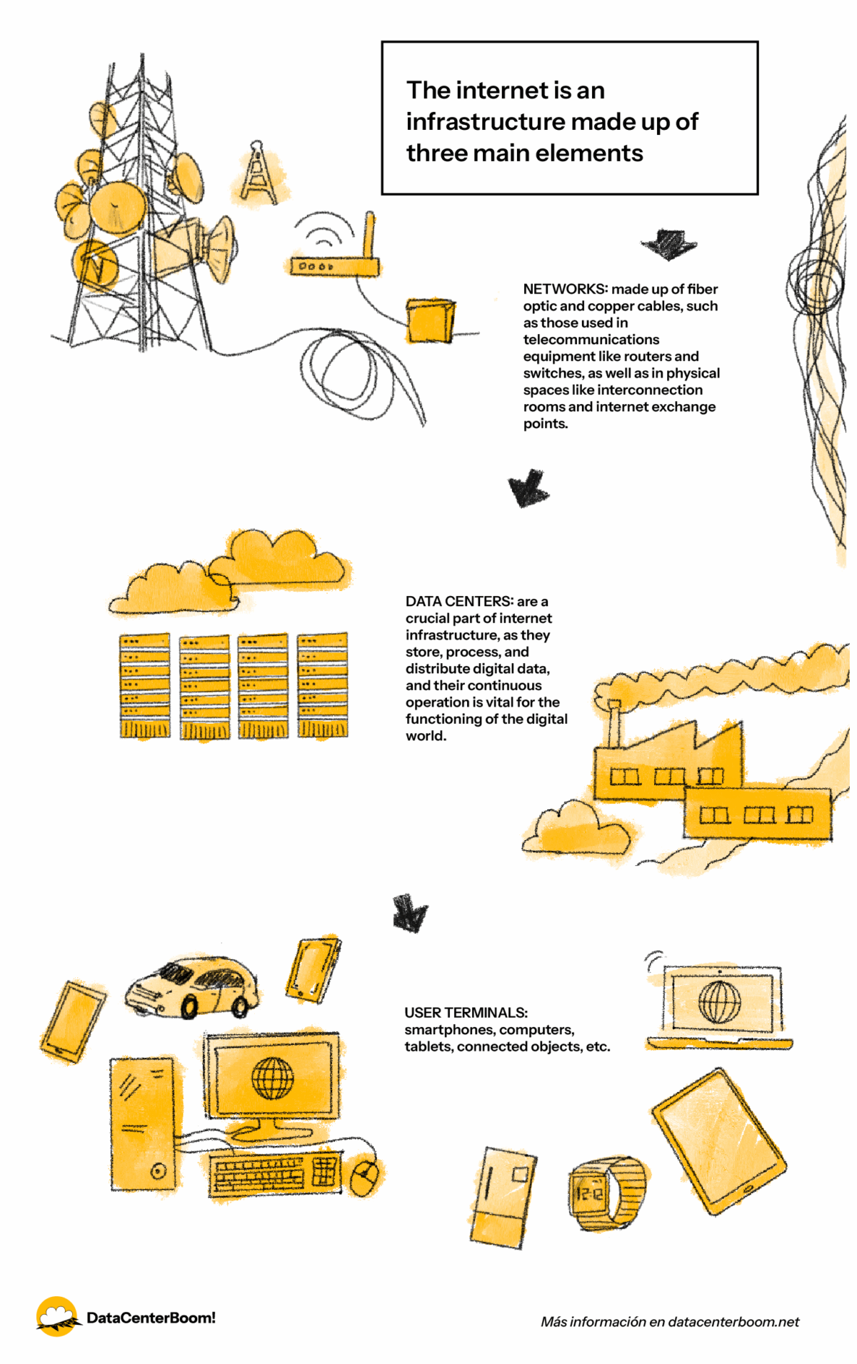 The internet is an infrastructure made up of three main elements: